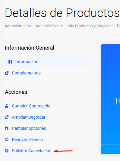 Si quieres cancelar tu plan de hosting, puedes solicitarlo a través del área de cliente.