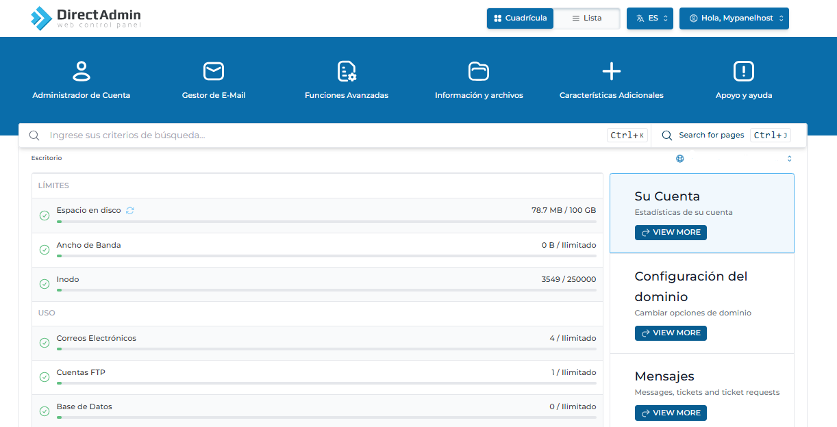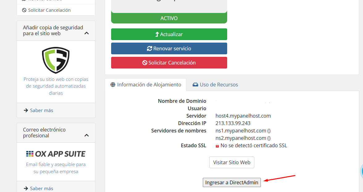 Una vez hayas ingresado en administrar visualizas e ingresas en directadmin
